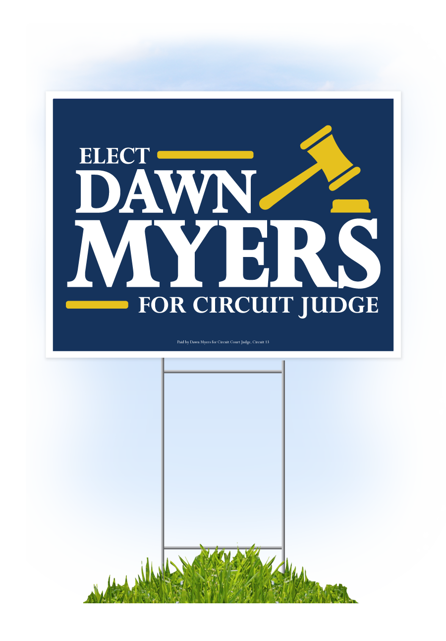 Volunteer Volunteer Name: Email Address: City: State: FloridaAlabamaAlaskaArizonaArkansasCaliforniaColoradoConnecticutDelawareGeorgiaHawaiiIdahoIllinoisIndianaIowaKansasKentuckyLouisianaMaineMarylandMassachusettsMichiganMinnesotaMississippiMissouriMontanaNebraskaNevadaNew HampshireNew JerseyNew MexicoNew YorkNorth CarolinaNorth DakotaOhioOklahomaOregonPennsylvaniaRhode IslandSouth CarolinaSouth DakotaTennesseeTexasUtahVermontVirginiaWashingtonWest VirginiaWisconsinWyoming ZIP: Phone: Keep me informed of the Campaign by text YesNo * By providing your phone number, you are consenting to receive text message updates, including automated text messages, to that number from Dawn Myers Campaign. Message & Data rates may apply, and message frequency may vary over time. Reply "STOP" to opt out of these text message updates I can help in the following ways: Distribute literature door-to-doorWork a phone bankWork the polls on Election DayDistribute yard signsPost a yard signHelp build large yard signsPost a 4x8 sign on commercial propertyAttend events with Dawn such as parades, festivals, conventionsHost a small event at my home or officeIntroduce Dawn to my religious organization, professional association or club Other ways I can help: I hereby authorize the use of my name in support of Dawn Myers during the 2026 election for Circuit Court Judge, Circuit 13, Group 1. YesNo Dawn with her family Dawn with her family